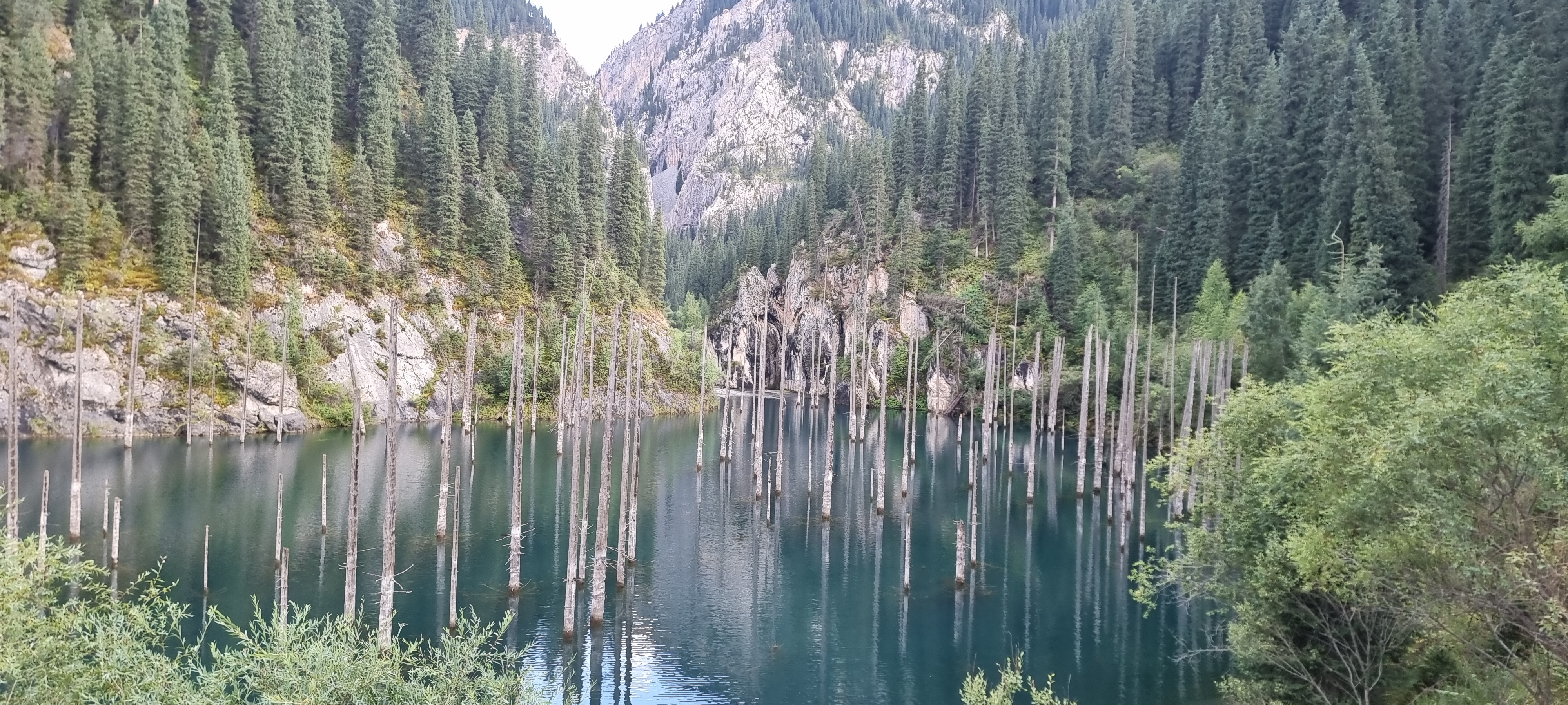 카인디호수는 1911년 지진이 난 이후에 생겼단다. 가문비나무가 화석처럼 호수에 꽂혀 있다. 이곳의 호수는 거의 지진 때문에 생겨 났단다.