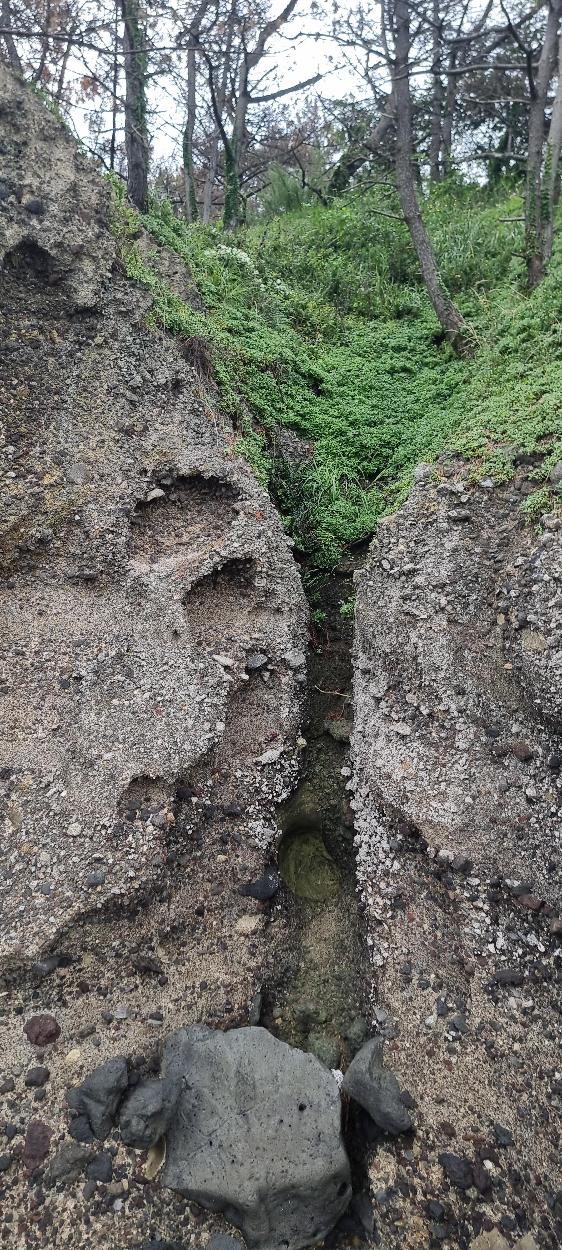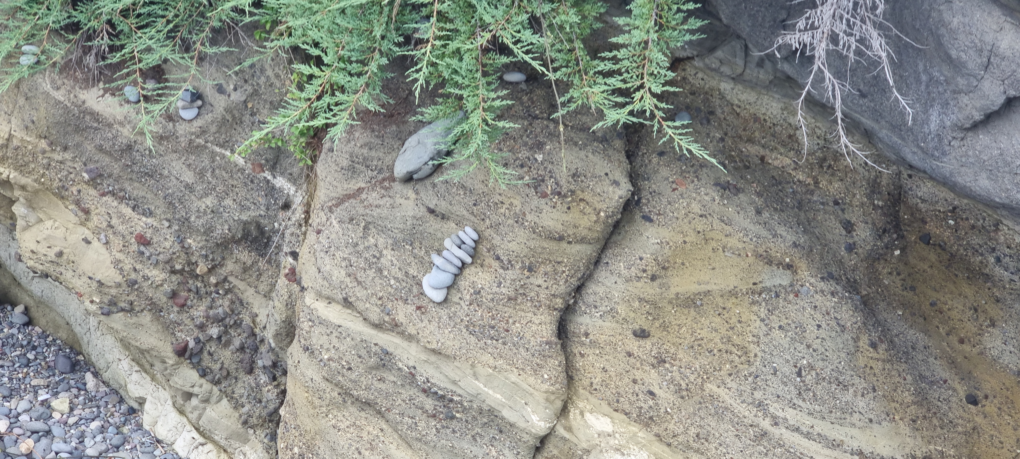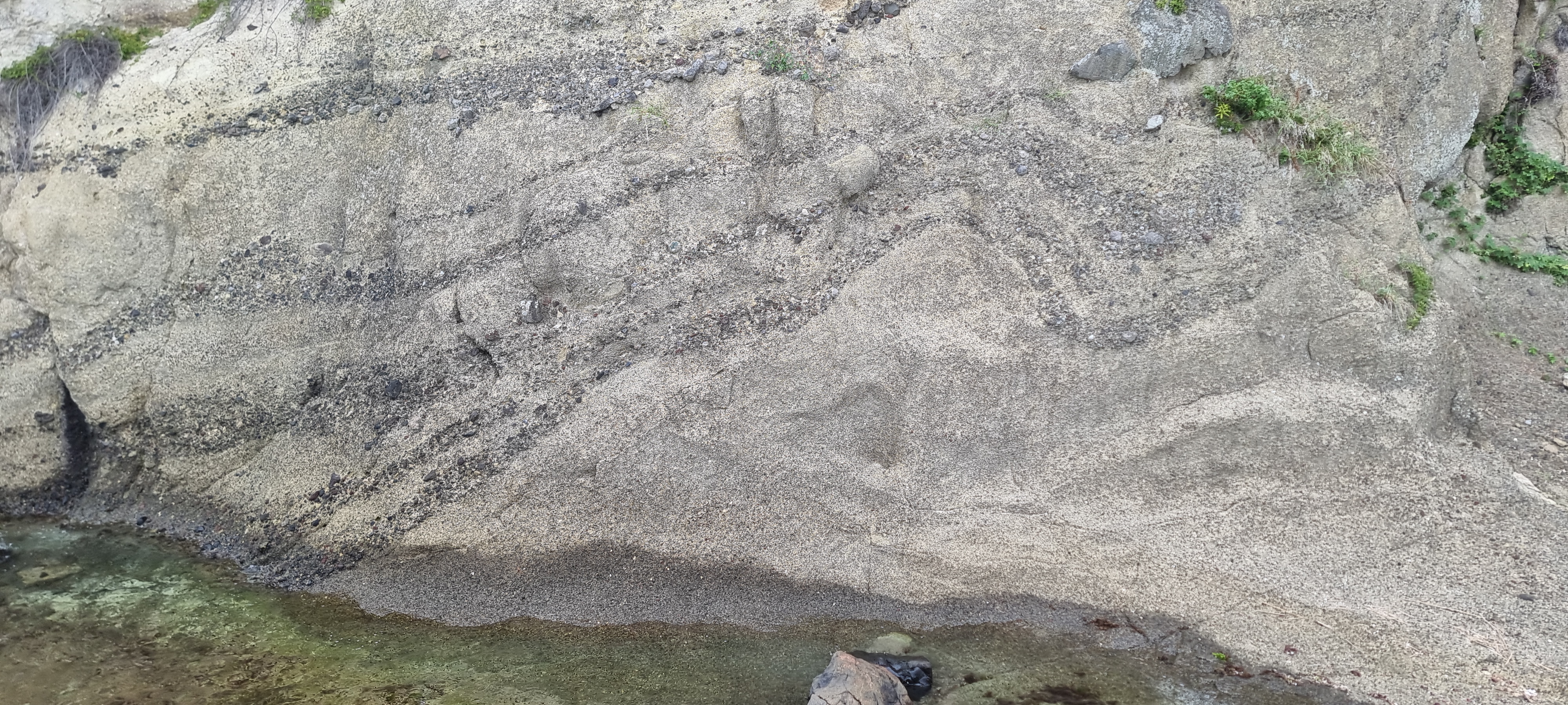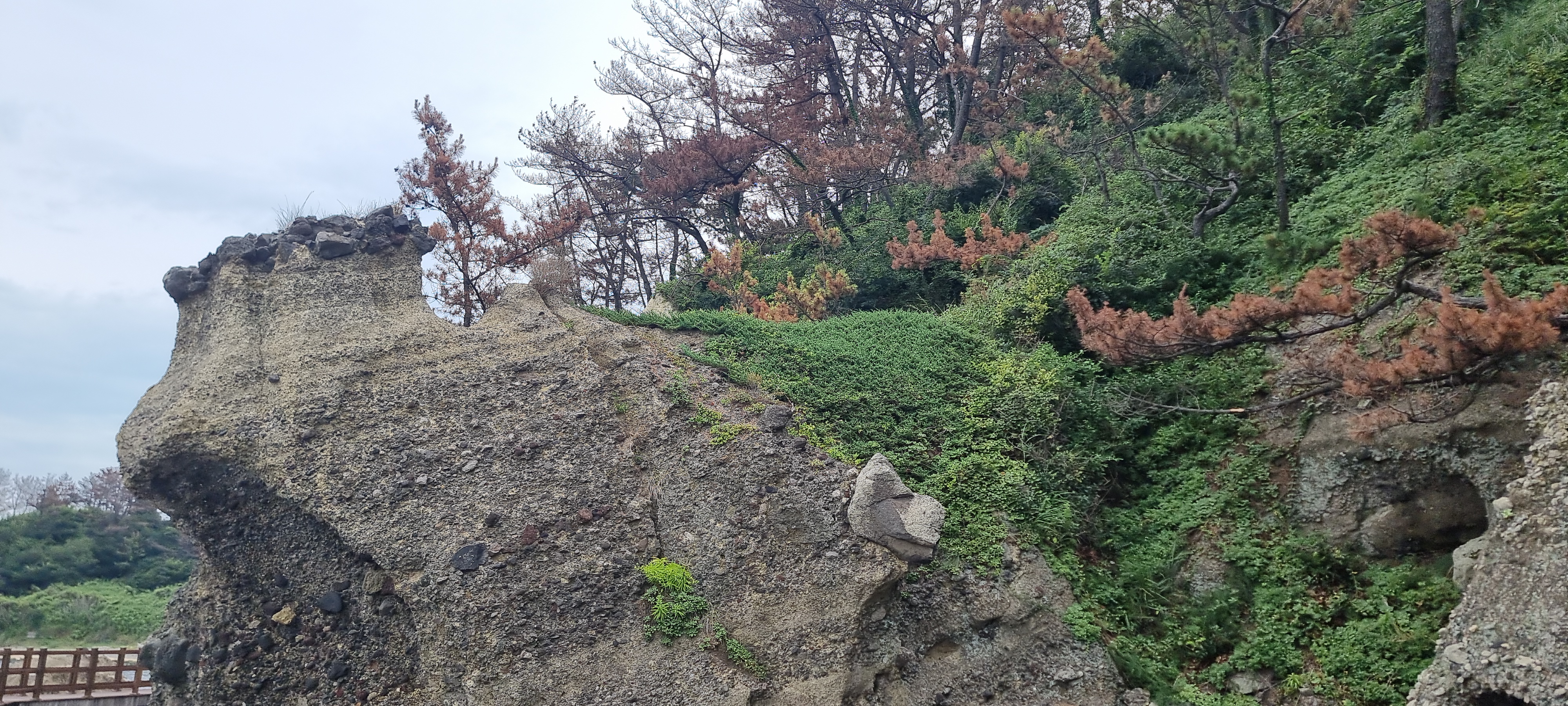여기는 화산활동의 의해 만들어진 곳이란다. 화산재와 화산탄들이 섞여서 만들어진 지층.