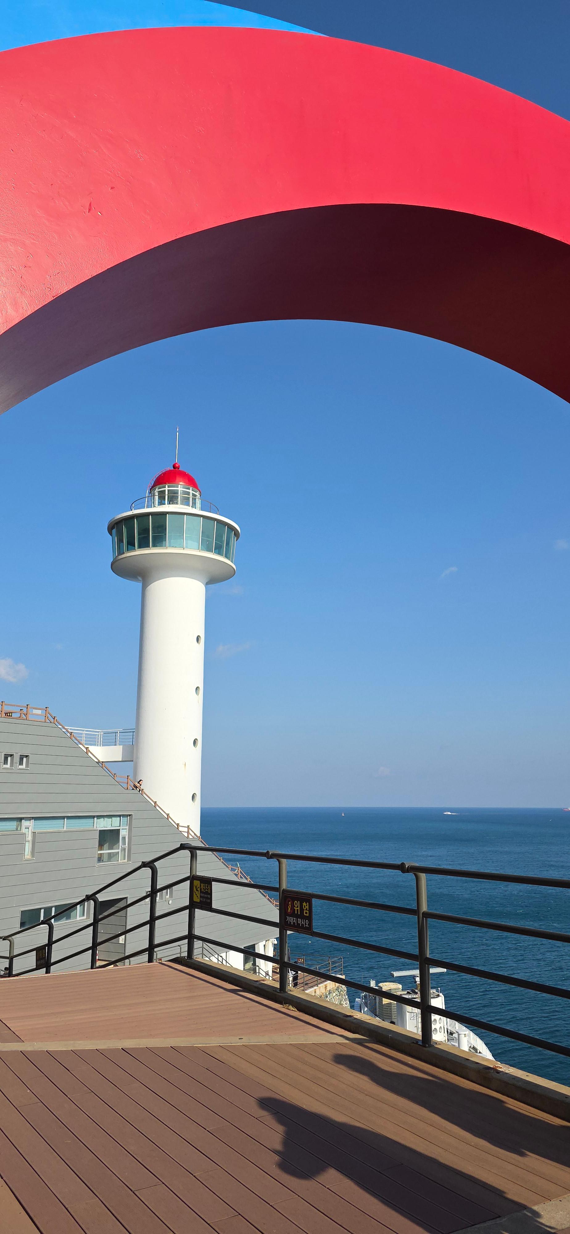 등대를 오르다가 내려다 본 계단 모습. 등대 위에서 보는 풍경도 뭐 그리 특별할 것은 없다. 왜냐하면 유리창이 뿌옇게 변해 있었고 해무도 끼어 있어 시정이 길지 않았다.