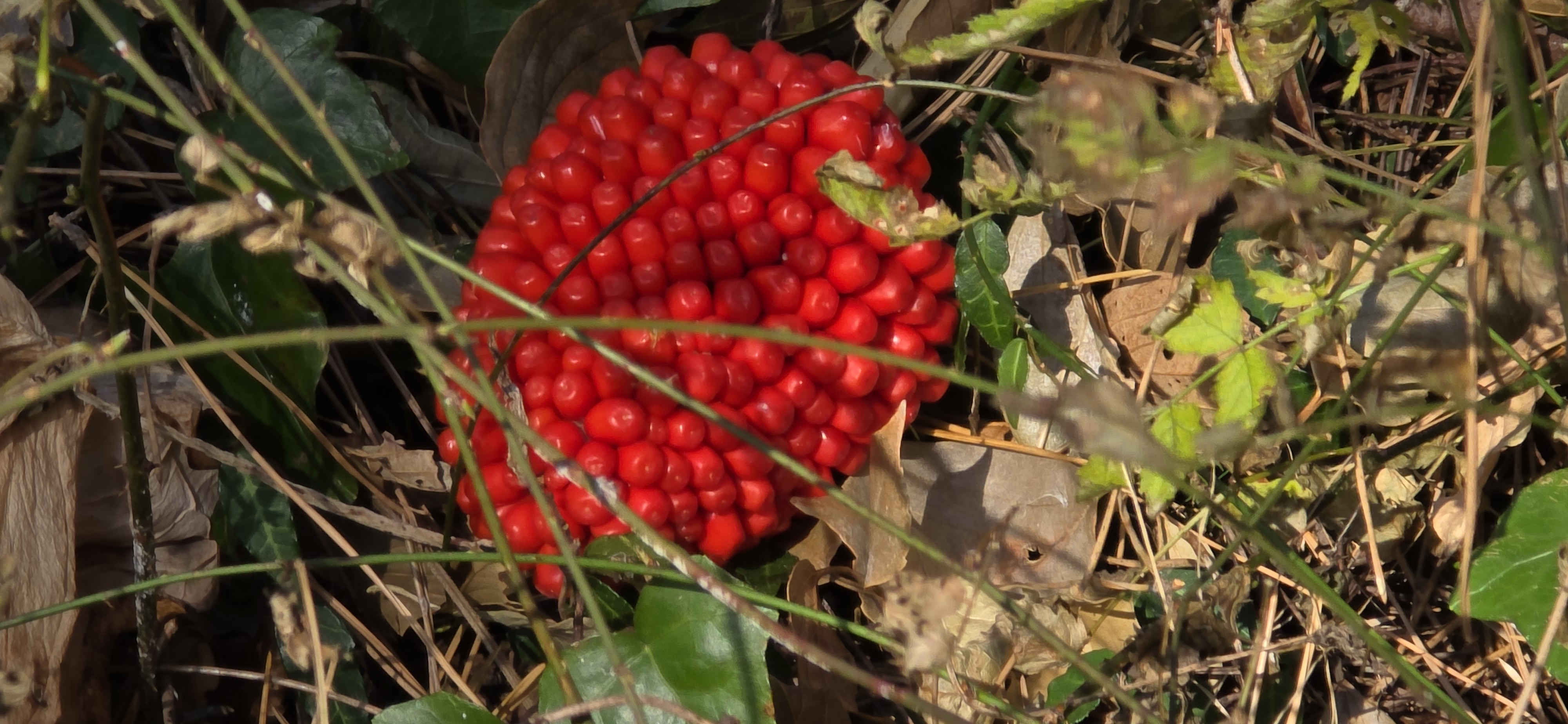 태종사 입구에서 만나는 향유꽃과 천남성 열매(아래). 이런 풍경을 보니 여긴 아직 가을 같다.
