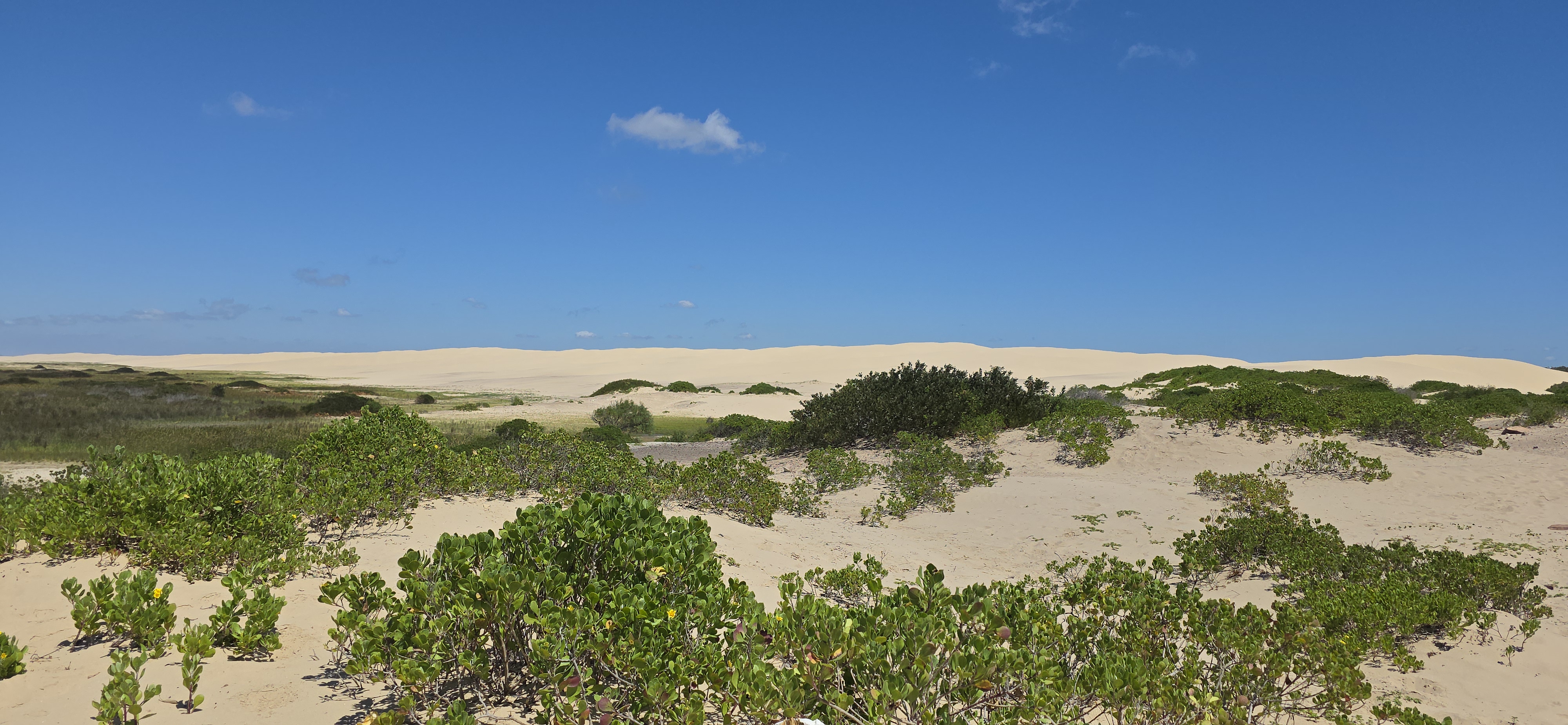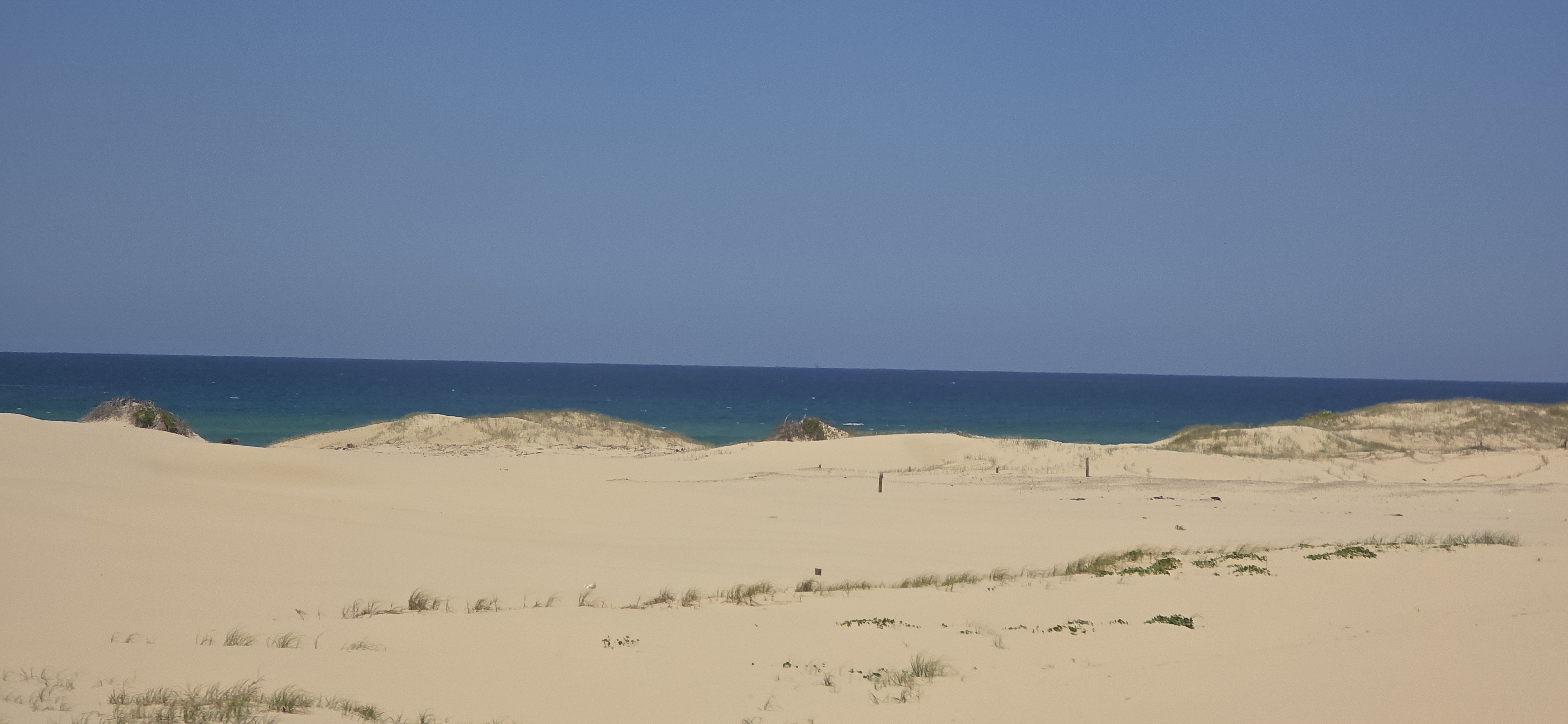 이 바닷가의 사막에서 썰매를 즐긴다. 모래가 매우 곱다.